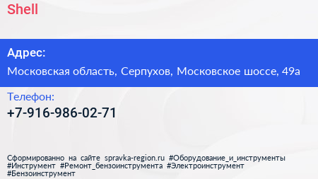 Shell по адресу Московская область, Серпухов, Московское шоссе, 49а в дальнейшем Организация, размещена в следующих категориях: