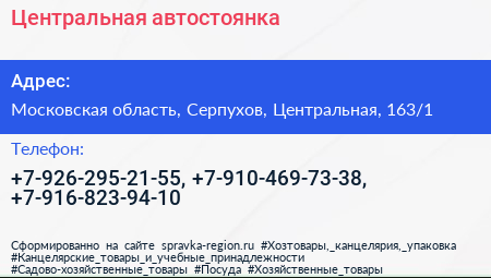 Центральная, автостоянка по адресу Московская область, Серпухов, Центральная, 163/1 в дальнейшем Организация, размещена в следующих категориях: