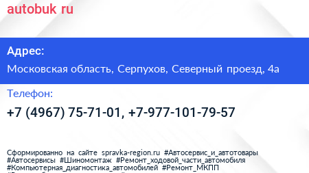 autobuk.ru по адресу Московская область, Серпухов, Северный проезд, 4а в дальнейшем Организация, размещена в следующих категориях: