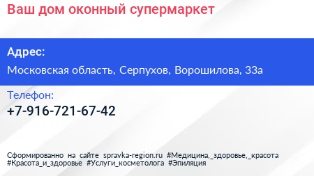 Ваш дом, оконный супермаркет по адресу Московская область, Серпухов, Ворошилова, 33а в дальнейшем Организация, размещена в следующих категориях: