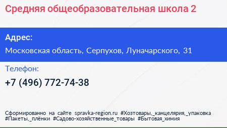 Средняя общеобразовательная школа №2 по адресу Московская область, Серпухов, Луначарского, 31 в дальнейшем Организация, размещена в следующих категориях:
