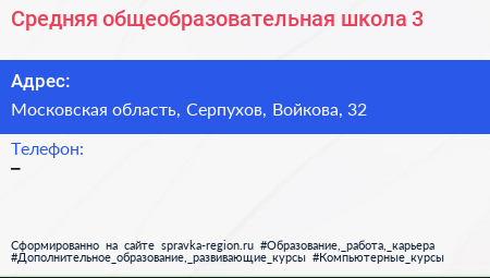 Средняя общеобразовательная школа №3 по адресу Московская область, Серпухов, Войкова, 32 в дальнейшем Организация, размещена в следующих категориях: