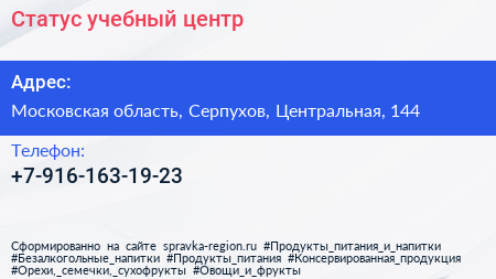 Статус, учебный центр по адресу Московская область, Серпухов, Центральная, 144 в дальнейшем Организация, размещена в следующих категориях: