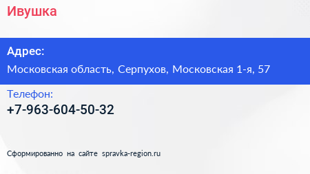 Ивушка по адресу Московская область, Серпухов, Московская 1-я, 57 в дальнейшем Организация, размещена в следующих категориях: