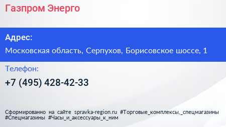 Газпром Энерго по адресу Московская область, Серпухов, Борисовское шоссе, 1 в дальнейшем Организация, размещена в следующих категориях: