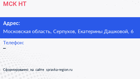 МСК-НТ по адресу Московская область, Серпухов, Екатерины Дашковой, 6 в дальнейшем Организация, размещена в следующих категориях: