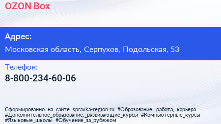 OZON Box по адресу Московская область, Серпухов, Подольская, 53 в дальнейшем Организация, размещена в следующих категориях: