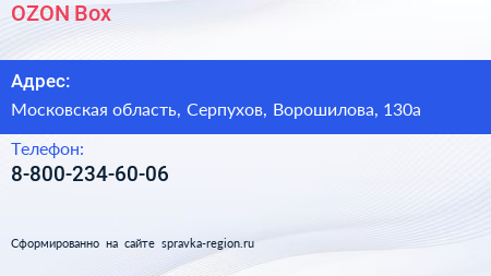 OZON Box по адресу Московская область, Серпухов, Ворошилова, 130а в дальнейшем Организация, размещена в следующих категориях:
