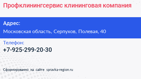 Профклинингсервис, клининговая компания по адресу Московская область, Серпухов, Полевая, 40 в дальнейшем Организация, размещена в следующих категориях: