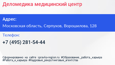 Деломедика, медицинский центр по адресу Московская область, Серпухов, Ворошилова, 128 в дальнейшем Организация, размещена в следующих категориях: