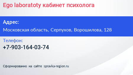 Ego laboratoty, кабинет психолога по адресу Московская область, Серпухов, Ворошилова, 128 в дальнейшем Организация, размещена в следующих категориях: