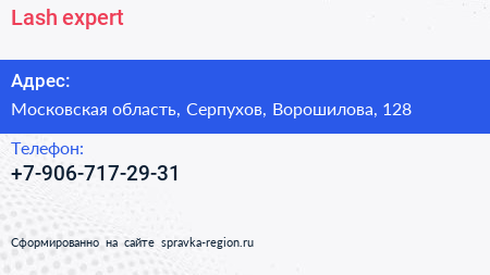 Lash expert по адресу Московская область, Серпухов, Ворошилова, 128 в дальнейшем Организация, размещена в следующих категориях: