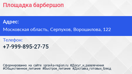 Площадка, барбершоп по адресу Московская область, Серпухов, Ворошилова, 122 в дальнейшем Организация, размещена в следующих категориях: