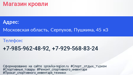 Магазин кровли по адресу Московская область, Серпухов, Пушкина, 45 к3 в дальнейшем Организация, размещена в следующих категориях: