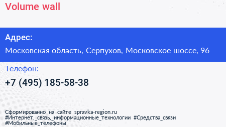 Volume wall по адресу Московская область, Серпухов, Московское шоссе, 96 в дальнейшем Организация, размещена в следующих категориях: