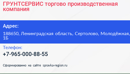 ГРУНТСЕРВИС, торгово-производственная компания по адресу 188650, Ленинградская область, Сертолово, Молодёжная, 1Б в дальнейшем Организация, размещена в следующих категориях: