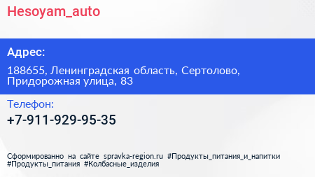 Hesoyam_auto по адресу 188655, Ленинградская область, Сертолово, Придорожная улица, 83 в дальнейшем Организация, размещена в следующих категориях: