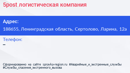 5post, логистическая компания по адресу 188655, Ленинградская область, Сертолово, Ларина, 12а в дальнейшем Организация, размещена в следующих категориях: