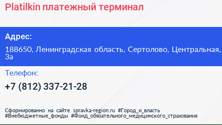 Platilkin, платежный терминал по адресу 188650, Ленинградская область, Сертолово, Центральная, 3а в дальнейшем Организация, размещена в следующих категориях: