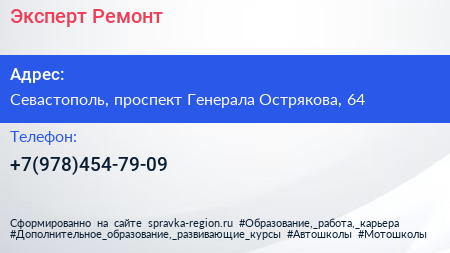 Эксперт Ремонт по адресу Севастополь, проспект Генерала Острякова, 64 в дальнейшем Организация, размещена в следующих категориях: