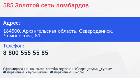 585*Золотой, сеть ломбардов по адресу 164500, Архангельская область, Северодвинск, Ломоносова, 81 в дальнейшем Организация, размещена в следующих категориях: