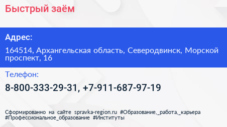 Быстрый заём по адресу 164514, Архангельская область, Северодвинск, Морской проспект, 16 в дальнейшем Организация, размещена в следующих категориях:
