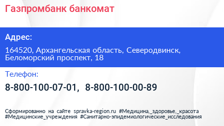 Газпромбанк, банкомат по адресу 164520, Архангельская область, Северодвинск, Беломорский проспект, 18 в дальнейшем Организация, размещена в следующих категориях: