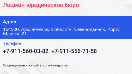 Лоцман, юридическое бюро по адресу 164500, Архангельская область, Северодвинск, Карла Маркса, 21 в дальнейшем Организация, размещена в следующих категориях: