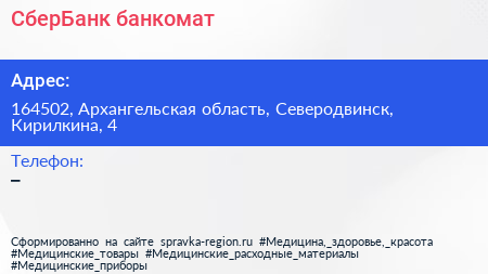 СберБанк, банкомат по адресу 164502, Архангельская область, Северодвинск, Кирилкина, 4 в дальнейшем Организация, размещена в следующих категориях: