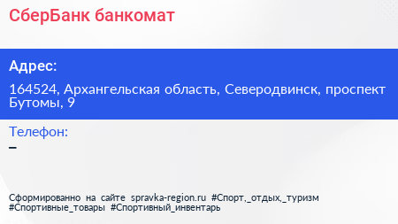 СберБанк, банкомат по адресу 164524, Архангельская область, Северодвинск, проспект Бутомы, 9 в дальнейшем Организация, размещена в следующих категориях: