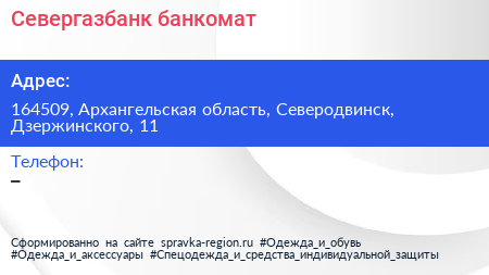 Севергазбанк, банкомат по адресу 164509, Архангельская область, Северодвинск, Дзержинского, 11 в дальнейшем Организация, размещена в следующих категориях: