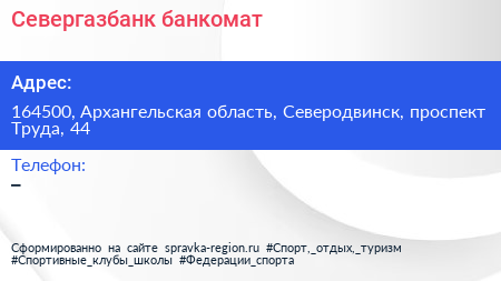 Севергазбанк, банкомат по адресу 164500, Архангельская область, Северодвинск, проспект Труда, 44 в дальнейшем Организация, размещена в следующих категориях: