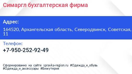Симаргл, бухгалтерская фирма по адресу 164520, Архангельская область, Северодвинск, Советская, 11 в дальнейшем Организация, размещена в следующих категориях: