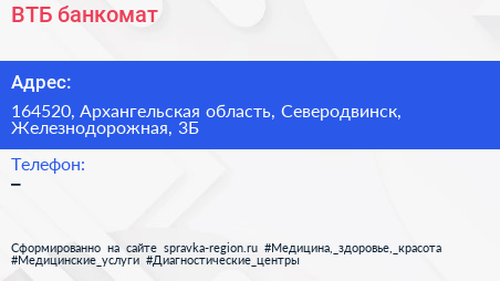 ВТБ, банкомат по адресу 164520, Архангельская область, Северодвинск, Железнодорожная, 3Б в дальнейшем Организация, размещена в следующих категориях: