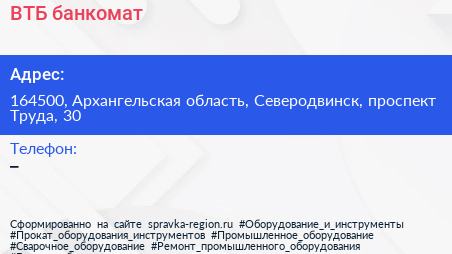ВТБ, банкомат по адресу 164500, Архангельская область, Северодвинск, проспект Труда, 30 в дальнейшем Организация, размещена в следующих категориях: