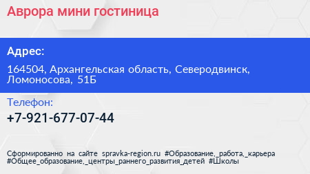 Аврора, мини-гостиница по адресу 164504, Архангельская область, Северодвинск, Ломоносова, 51Б в дальнейшем Организация, размещена в следующих категориях: