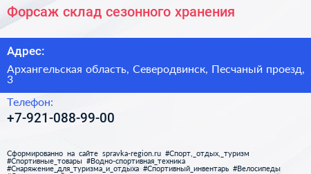 Форсаж, склад сезонного хранения по адресу Архангельская область, Северодвинск, Песчаный проезд, 3 в дальнейшем Организация, размещена в следующих категориях: