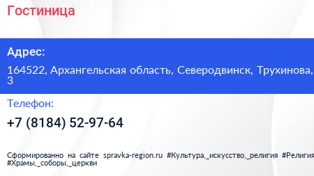 Гостиница по адресу 164522, Архангельская область, Северодвинск, Трухинова, 3 в дальнейшем Организация, размещена в следующих категориях: