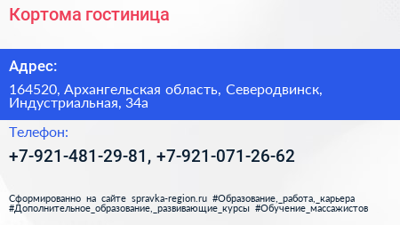 Кортома, гостиница по адресу 164520, Архангельская область, Северодвинск, Индустриальная, 34а в дальнейшем Организация, размещена в следующих категориях: