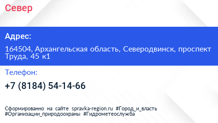 Север по адресу 164504, Архангельская область, Северодвинск, проспект Труда, 45 к1 в дальнейшем Организация, размещена в следующих категориях: