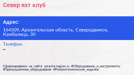 Север, яхт-клуб по адресу 164509, Архангельская область, Северодвинск, Камбалица, 30 в дальнейшем Организация, размещена в следующих категориях: