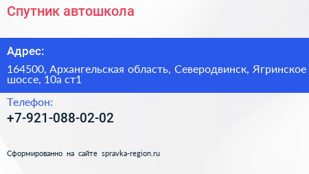 Спутник, автошкола по адресу 164500, Архангельская область, Северодвинск, Ягринское шоссе, 10а ст1 в дальнейшем Организация, размещена в следующих категориях: