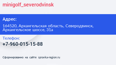 #minigolf_severodvinsk по адресу 164520, Архангельская область, Северодвинск, Архангельское шоссе, 31а в дальнейшем Организация, размещена в следующих категориях: