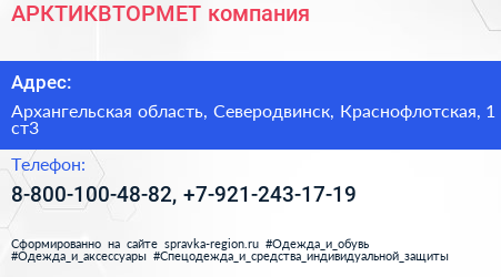 АРКТИКВТОРМЕТ, компания по адресу Архангельская область, Северодвинск, Краснофлотская, 1 ст3 в дальнейшем Организация, размещена в следующих категориях: