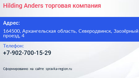 Hilding Anders, торговая компания по адресу 164500, Архангельская область, Северодвинск, Заозёрный проезд, 4 в дальнейшем Организация, размещена в следующих категориях: