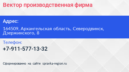 Вектор, производственная фирма по адресу 164509, Архангельская область, Северодвинск, Дзержинского, 8 в дальнейшем Организация, размещена в следующих категориях: