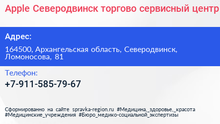 Apple Северодвинск, торгово-сервисный центр по адресу 164500, Архангельская область, Северодвинск, Ломоносова, 81 в дальнейшем Организация, размещена в следующих категориях: