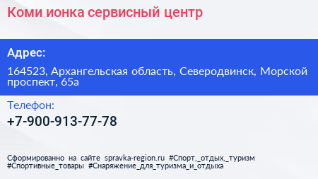 Коми$$ионка, сервисный центр по адресу 164523, Архангельская область, Северодвинск, Морской проспект, 65а в дальнейшем Организация, размещена в следующих категориях: