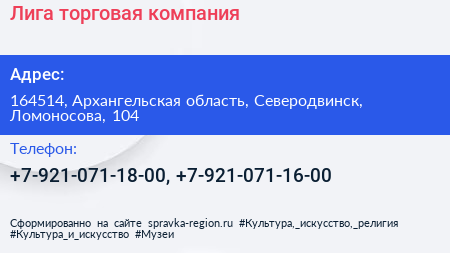 Лига, торговая компания по адресу 164514, Архангельская область, Северодвинск, Ломоносова, 104 в дальнейшем Организация, размещена в следующих категориях: