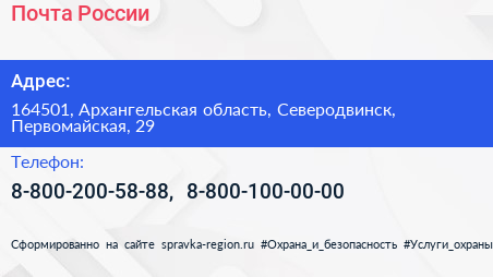 Почта России по адресу 164501, Архангельская область, Северодвинск, Первомайская, 29 в дальнейшем Организация, размещена в следующих категориях: